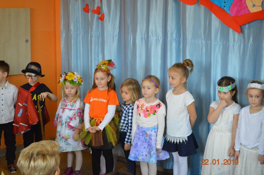 Babcia i Dziadek to jedni z najważniejszych ludzi w życiu naszych dzieci. Dlatego też, grupa Pszczółek nie zapomniała o ważnych dla swoich Dziadków świętach. Dnia 22.01.2019 r. Średniaki z Naszego Przedszkola wystawili piękne i wzruszające przedstawienie dla dziadków. Pani Wiosna , Lato, Jesień i Zima, Stary i Nowy Rok oraz inne dzieci śpiewali piosenki, mówili wierszyki a na koniec przekazali Dziadkom upominki w postaci ramki ze zdjeciem. Dziadkowie wraz z wnukami zostali poczęstowani słodkościami a póżniej wszyscy wzruszeni i zadowoleni wrócili do swoich domów.
