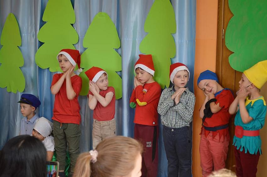 Na drugi dzień grupa ta przedstawiła bajkę swoim młodszym kolegom z grupy średniej i grupy maluszków. Dzieci w ciszy i skupieniu oglądały swoich kolegów, a po występie biły gromkie brawa.