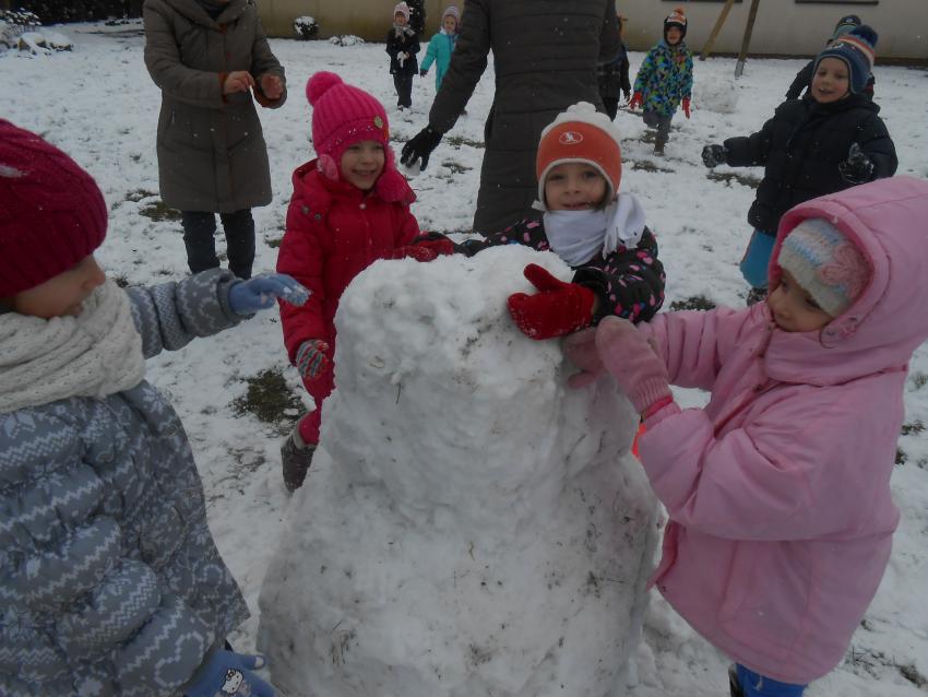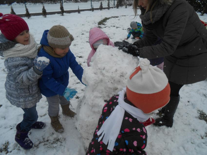 W wielu miejscach w kraju spadł długo wyczekiwany przez najmłodszych śnieg.Wykorzystaliśmy więc sprzyjającą aurę i zorganizowaliśmy ZIMOWĄ OLIMPIADĘ dla naszych przedszkolaków. Główną atrakcją dla najmłodszych było lepienie bałwanow oraz rzucanie śnieżkami. Zabawa byla wręcz cudowna a maluchy wykazały się ogromną fantazją i sprawnością.