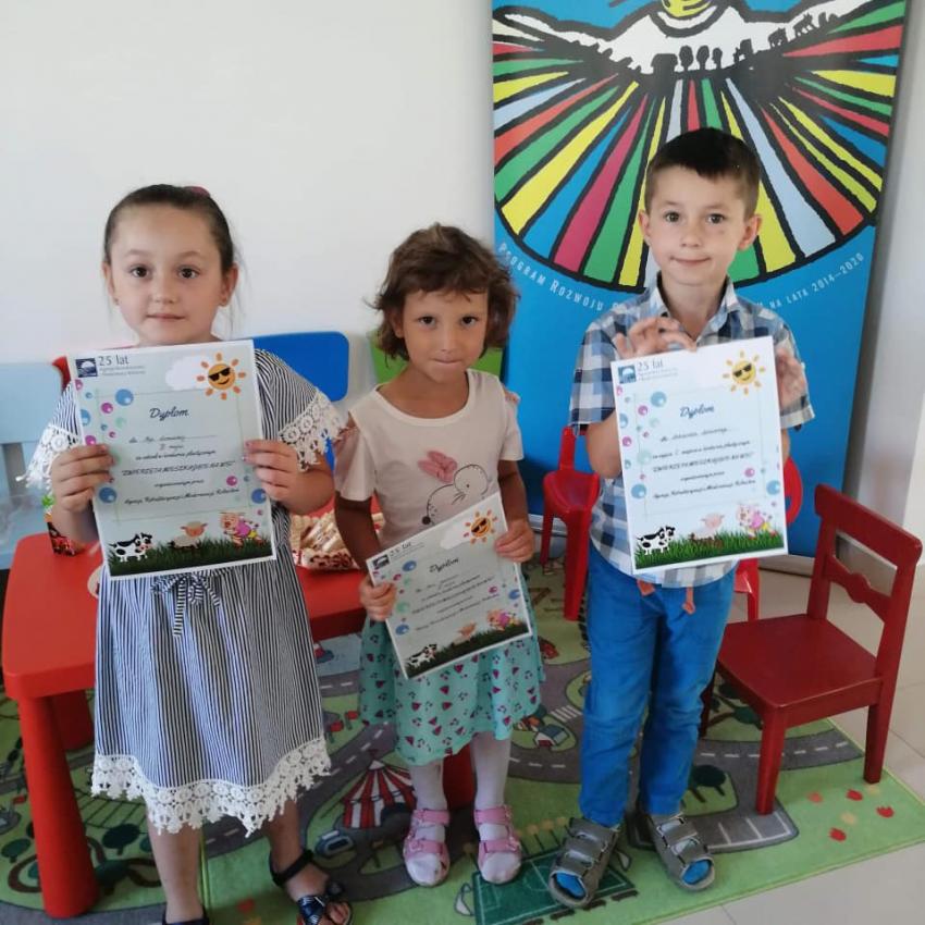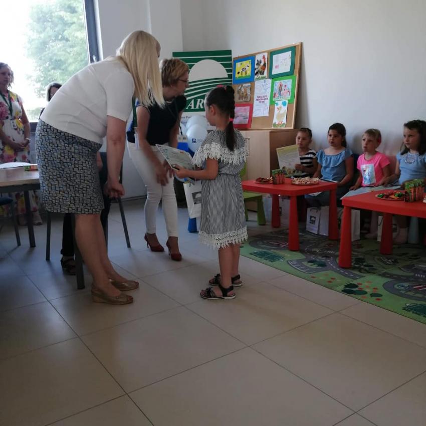 08.06.2019 nastąpiło rozstrzygnięcie konkursu plastycznego PT. "ZWIERZĘTA MIESZKAJĄCE NA WSI" organizowanego przez Agencję Restrukturyzacji i Modernizacji Rolnictwa w Piotrkowie Tryb. Trójka naszych podopiecznych brała udział w tym konkursie i wraz z rodzicami pojechała do siedziby ARiMR na rozdanie nagród. Dzieci zostały obdarowane pięknymi nagrodami oraz miłym poczęstunkiem. Wraz z pracownikami ARiMR oraz rodzicami dzeci zwiedziły cały budek oraz dowiedziały się kilku nowychm, ciekawych rzeczy.