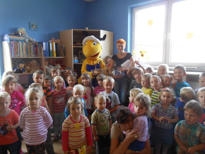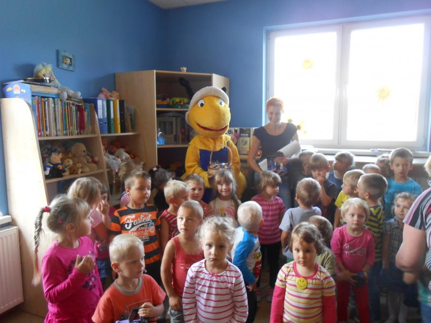 Z okazji rozpoczecia nowego roku szkolnego, naszych przedszkolaków odwiedził niezwykły gość. Mrówka wspólnie z dziećmi miło spedziła czas podczas wspólnych zabaw i spiewu. Dzieciaki były oczarowane tym niecodziennym spotkaniem.