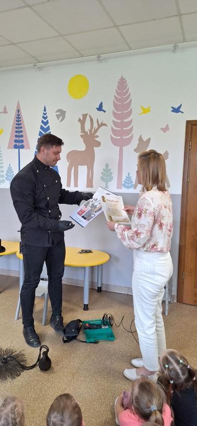 ?Złap się za guzik a szczęście Cię nie ominie.? Dnia 06.05.2025r. nasze Przedszkole odwiedził wyjątkowy gość Pan Kominiarz Kamil Żak. Zaprezentował się w galowym stroju kominiarskim. Opowiedział przedszkolakom o wykonywanym zawodzie. Przedstawił dawne i współczesne techniki czyszczenia kominów. Z okazji obchodzonego święta Kominiarza życzymy pomyślności w pracy zawodowej.
