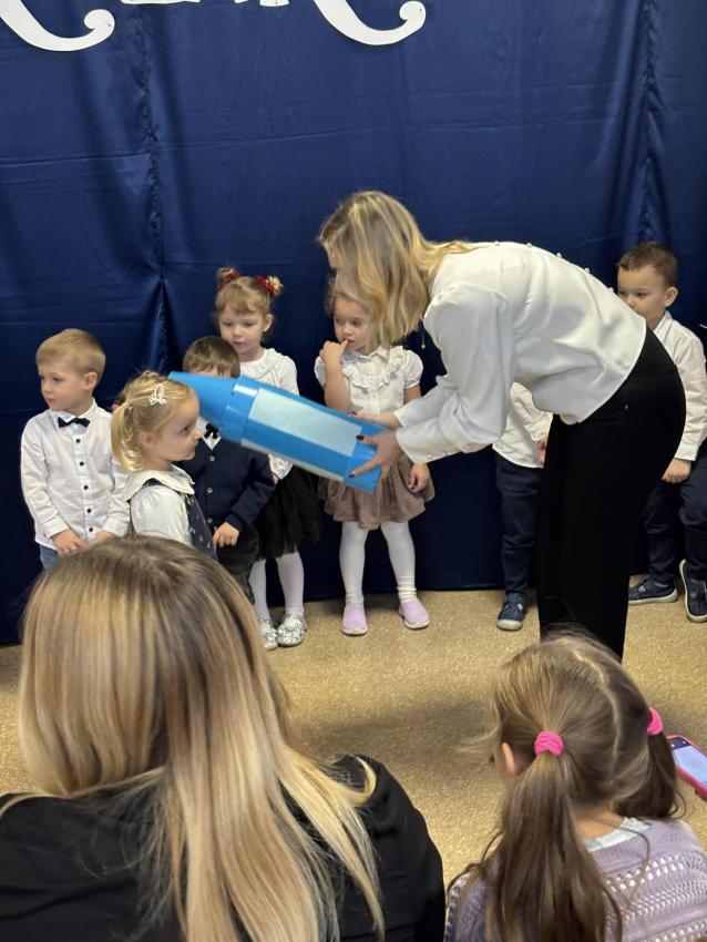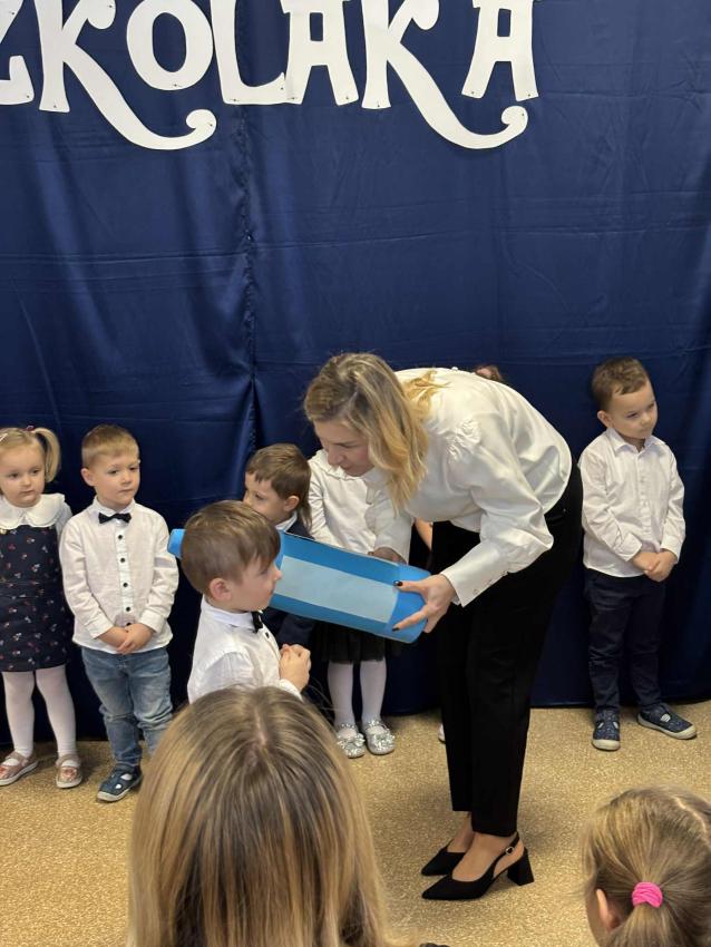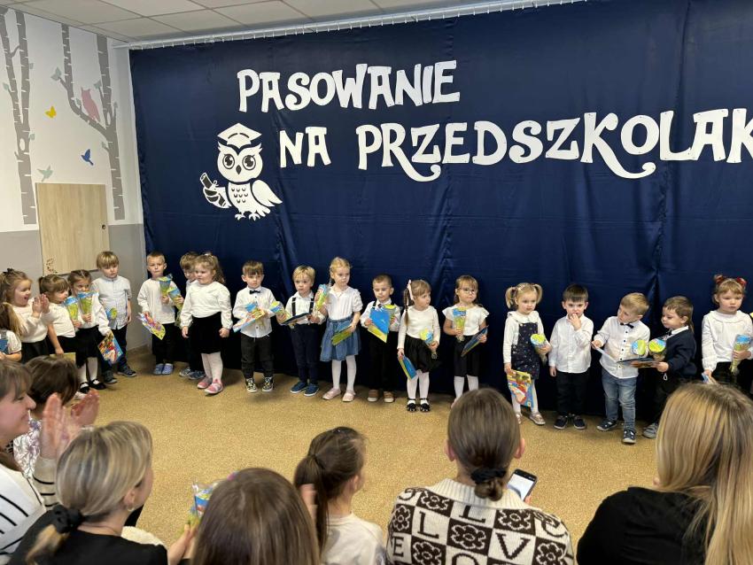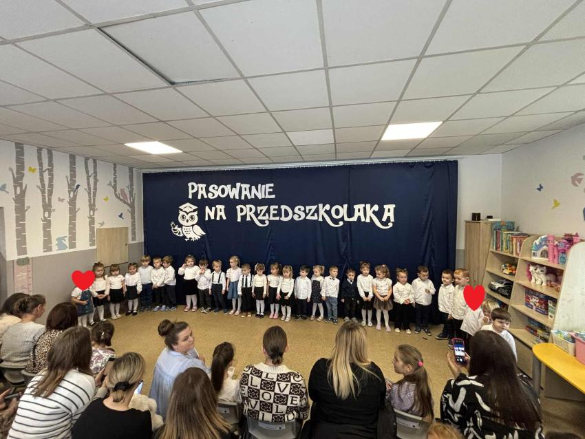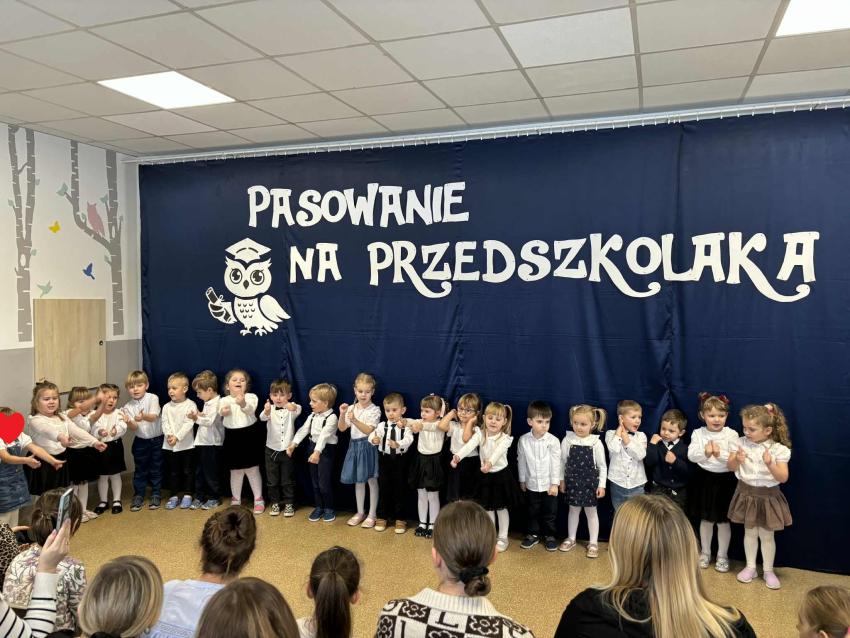 Dzień 27.11.2025r. to wyjątkowa chwila w życiu naszych najmłodszych przedszkolaków. Tego dnia w naszym przedszkolu odbyło się uroczyste Pasowanie na Przedszkolaka. Dzieci po raz pierwszy wystąpiły przed publicznością, prezentując swoje umiejętności wokalne, recytatorskie i taneczne. Następnie złożyły uroczyste ślubowanie a Pani Dyrektor dokonała uroczystego pasowania. Na pamiątkę tak ważnego wydarzenia przedszkolaki otrzymały dyplomy i słodkie upominki.