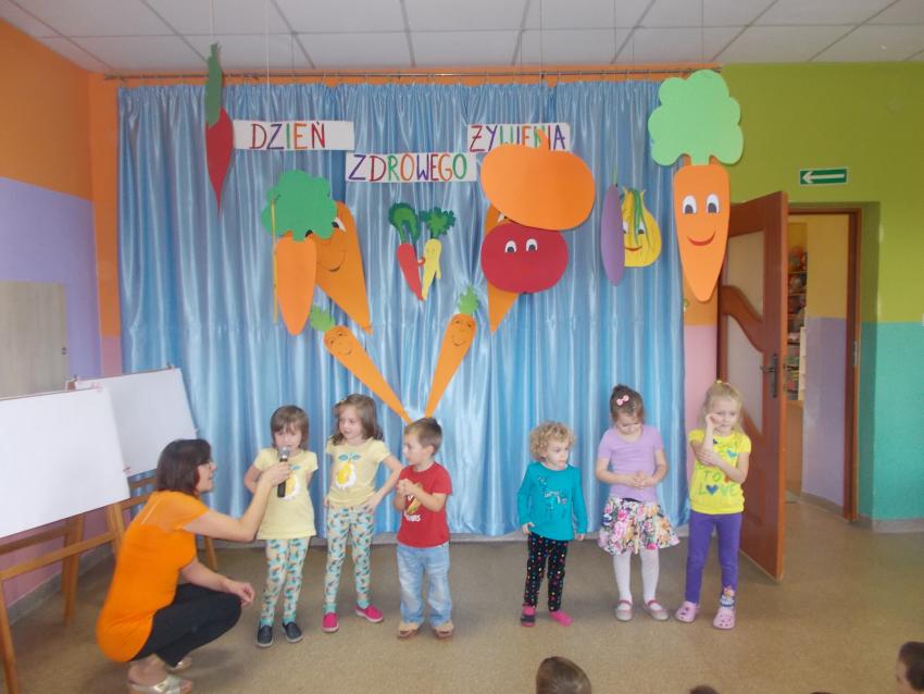 W dniu 8 listopada w przedszkolu zorganizowano Dzień Zdrowego Żywienia. Celem przedsięwzięcia było propagowanie zdrowego stylu życia poprzez uświadamianie wartości prawidłowego odżywiania się, spożywania wartościowych produktów dla harmonijnego rozwoju całego organizmu człowieka; wyposażenie w podstawowe wiadomości dotyczące zdrowia, zapoznanie z tym co sprzyja a co zagraża zdrowiu.