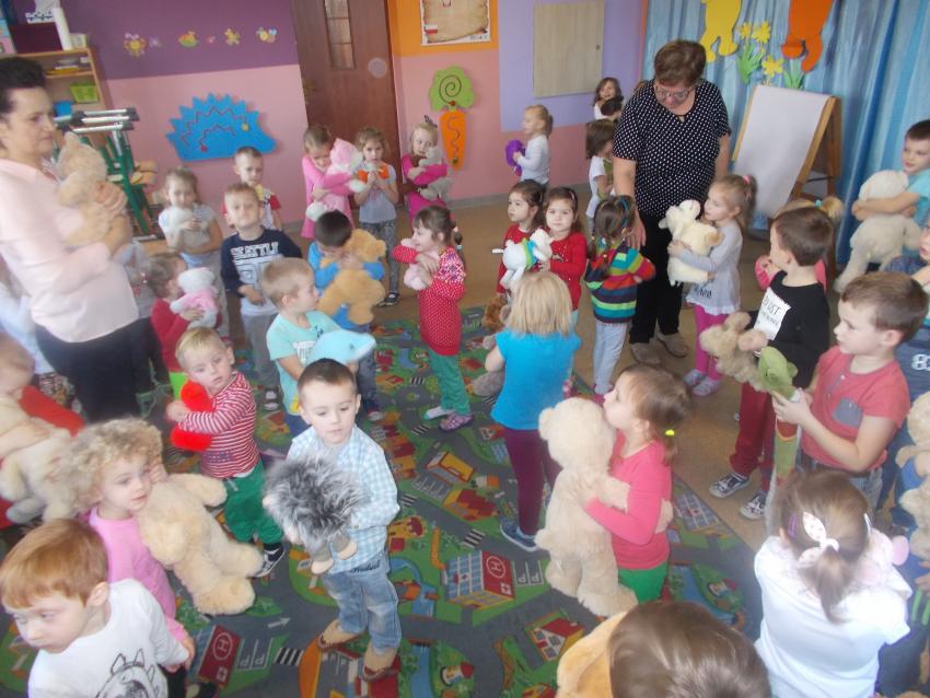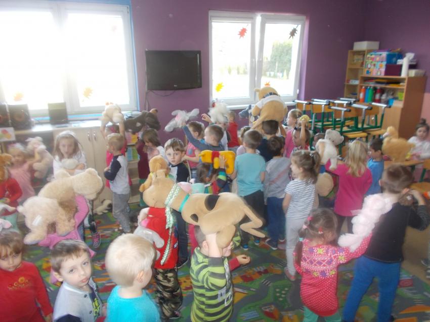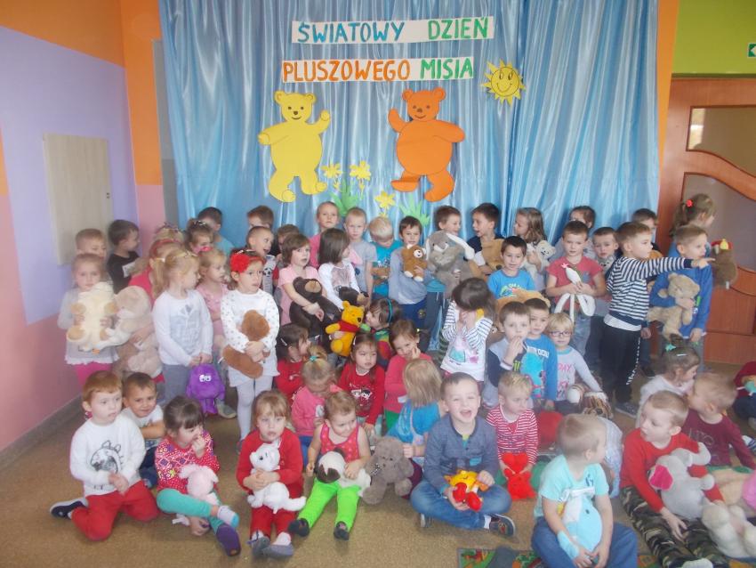 W dniu 25 listopada wszystkie dzieci z naszego przedszkola uroczyście obchodziły Światowy Dzień Pluszowego Misia. W naszym przedszkolu obchodzenie tego święta to już tradycja. Tego dnia dzieci przyszły do przedszkola ze swoimi ulubionymi i kochanymi pluszakami. Dzieci, opowiadały o swoich maskotkach, słuchały czytanych przez panie fragmentów książek o niedźwiadkach, nauczyły się wiersza o misiu, bawiły się w starego niedźwiedzia oraz tańczyły z misiami w rytm piosenki „Pokochaj pluszowego misia". Ten dzień wywołał u dzieci wiele uśmiechów i radości. Miś jest bardzo ważny dla każdego dziecka. Można go przytulić, a nawet zwierzyć mu się z sekretów. Mamy nadzieję, że to wielkie misiowe przyjęcie zostanie w naszych wspomnieniach na długi czas.