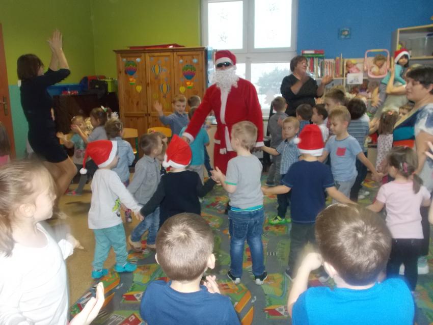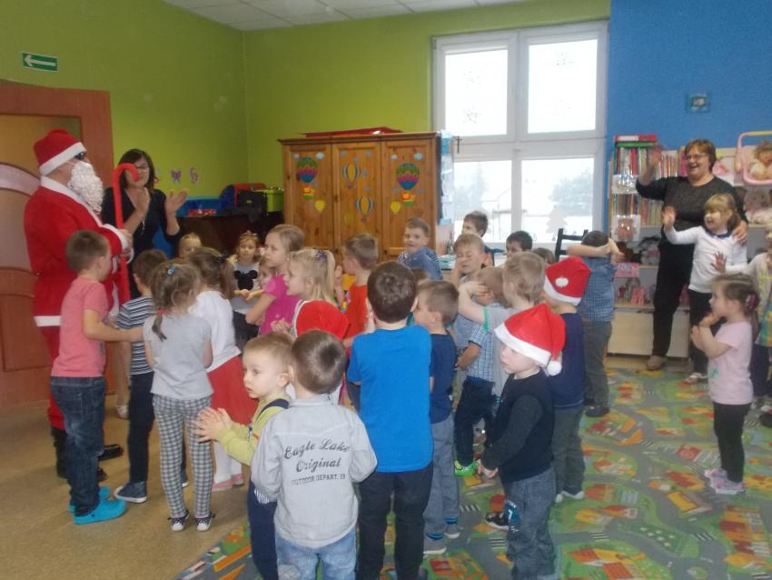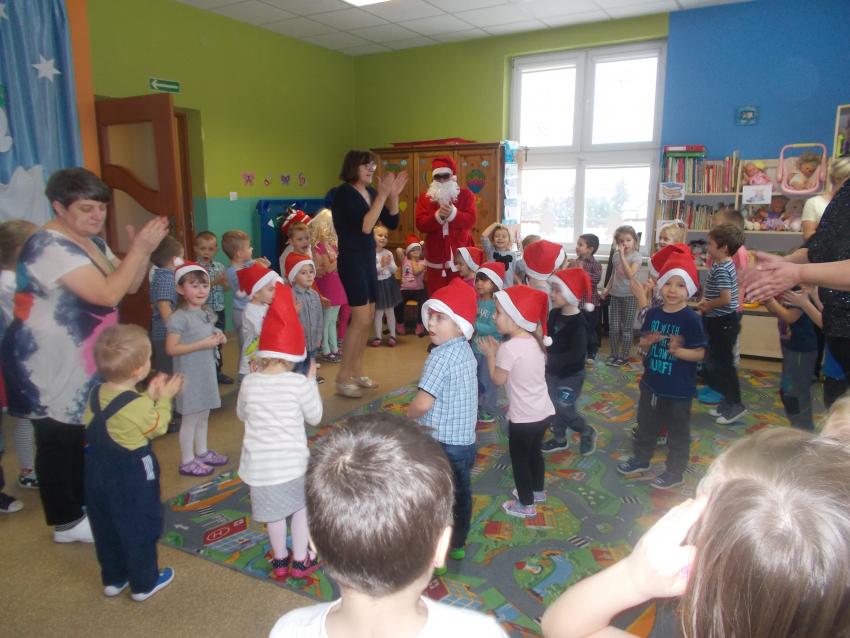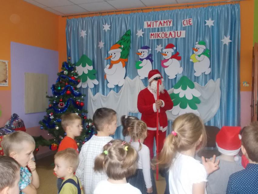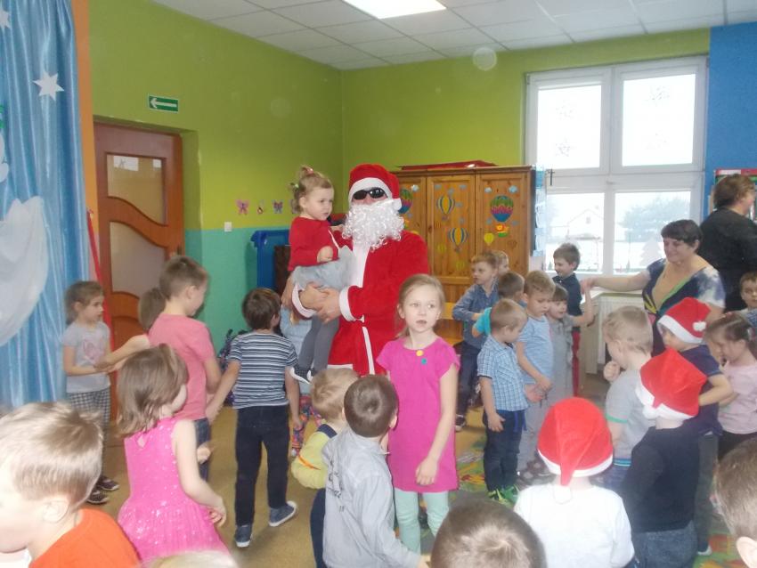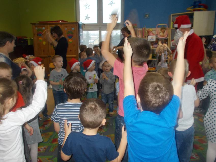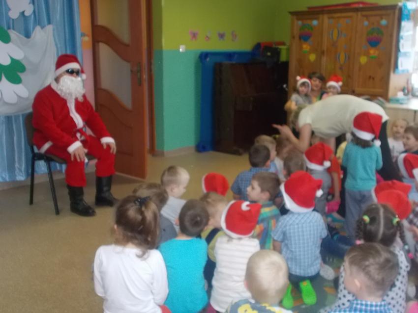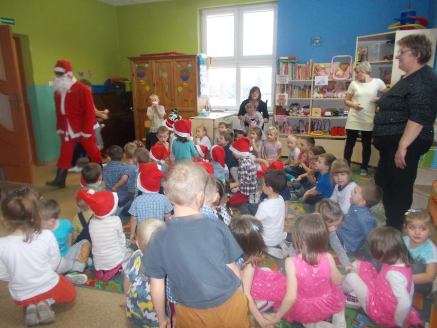 Wizyta ŚWIĘTEGO MIKOŁAJA w przedszkolu, to jeden z najbardziej oczekiwanych przez dzieci dni w roku. Wszystkie dzieci już od samego rana z wielką niecierpliwością spoglądały na drzwi, nasłuchiwały „Mikołajowych” dzwoneczków. Święty Mikołaj nie zawiódł dzieci i nie kazał długo na siebie czekać. Już z samego rana zawitał do PRZEDSZKOLA. Maluszki dzielnie zaśpiewały przygotowaną piosenkę, a Mikołaj wręczył każdemu dziecku wspaniały prezent i musiał się niestety pożegnać, ponieważ czekały na niego dzieci z całego świata. A prezenty były wspaniałe, radość po rozpakowaniu podarków była ogromna – co potwierdza pamiątkowe zdjęcie. Dzieci długo wspominały ten dzień, dzieliły się wrażeniami, ponownie oglądały prezenty, zerkały przez okno z nadzieją, że jeszcze raz zobaczą naszego gościa i pomachają mu na pożegnanie.