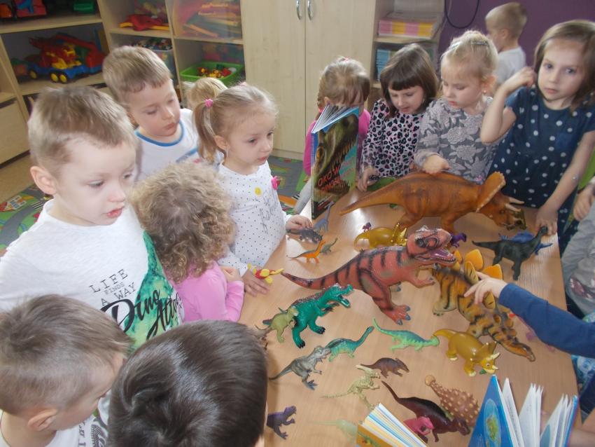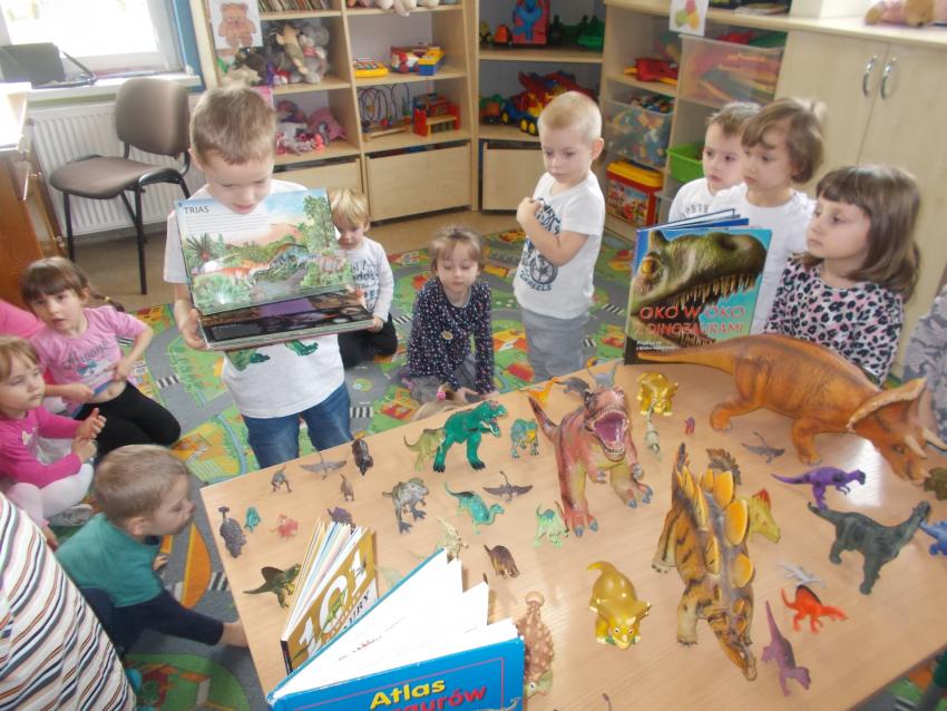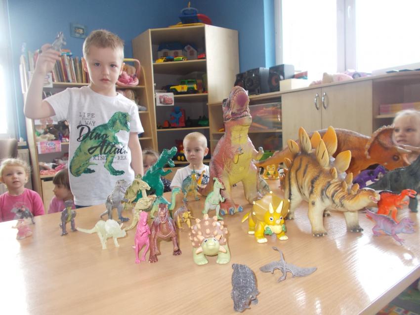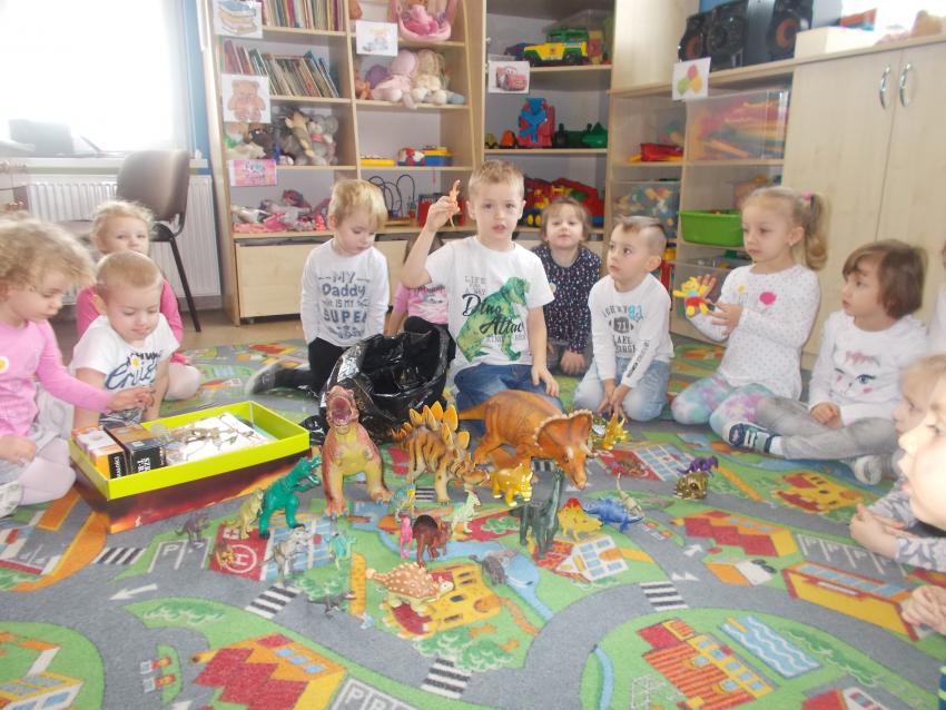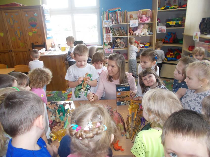Grupę krasnoludków odwiedził starszy przedszkolak aby pokazać najmłodszym swoją kolekcję dotyczącą dinozaurów i ich świata. Mateusz bardzo się postarał żeby zaciekawić swoją wiedzą inne dzieciaki, co mu się udało. Maluchy z zaciekawieniem słuchały i oglądały eksponaty. Było to bardzo ciekawe zajęcie i pełne przeróżnych ciekawostek. Maluchy serdecznie podziękowały Mateuszowi, który wykazał się ogromną wiedzą.