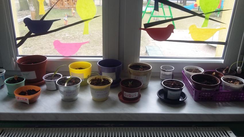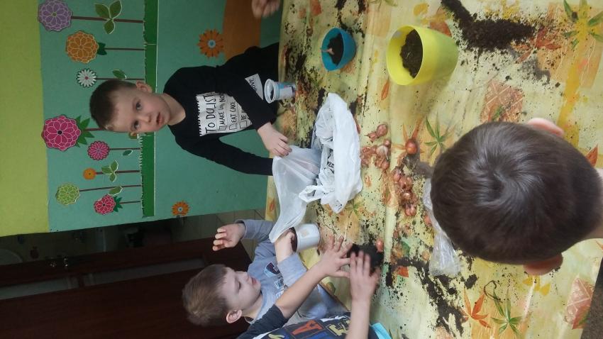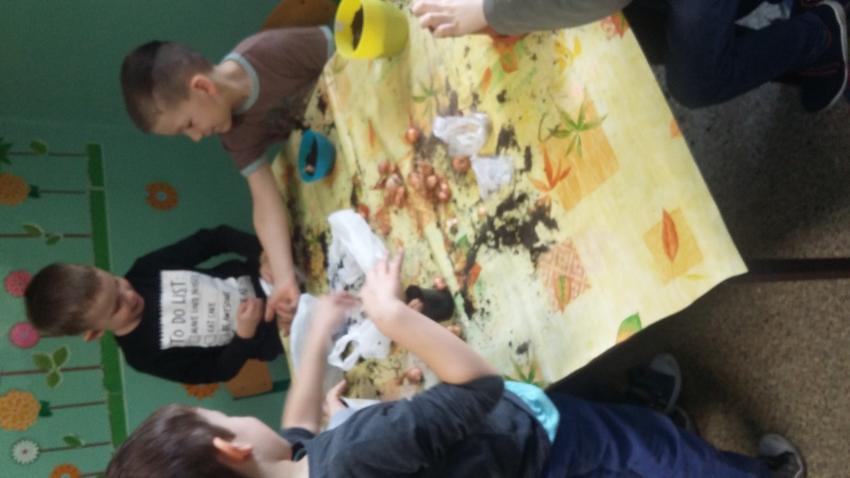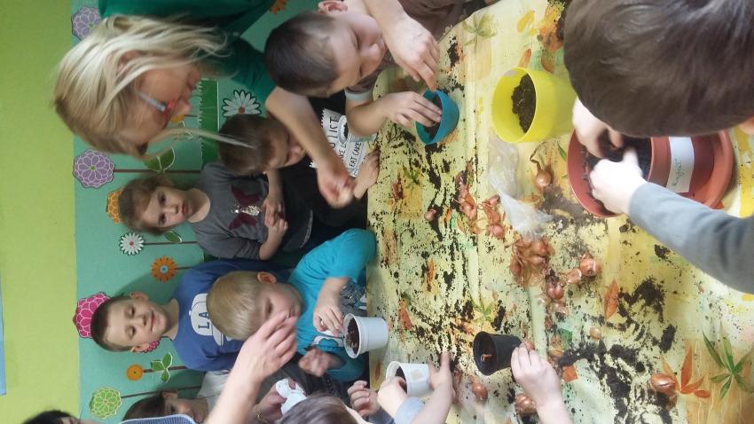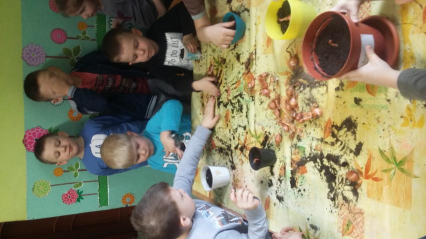Grupa "MĄDRE SOWY" założyła w kąciku przyrody hodowle różnego rodzaju cebulek. Będziemy pielęgnować rośliny i obserwować jak wzrastają.