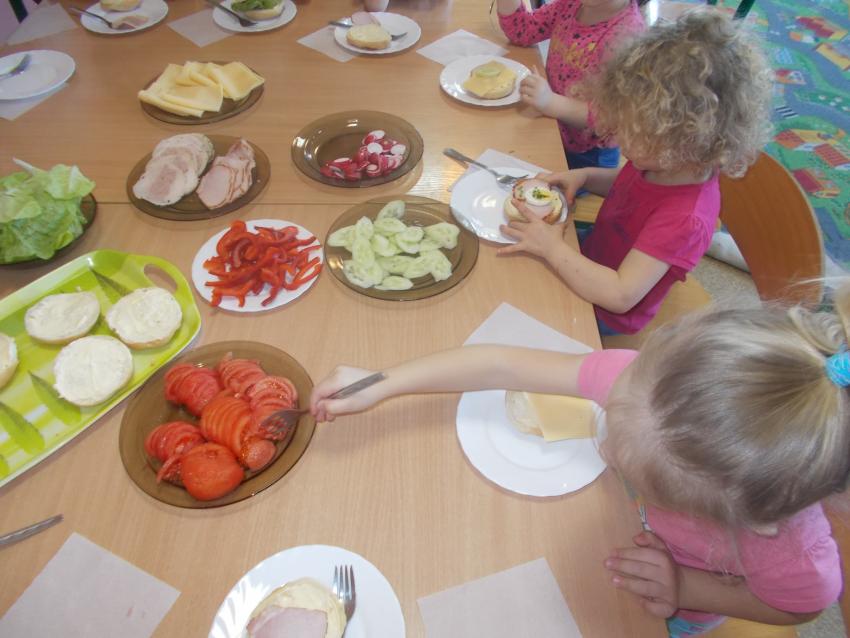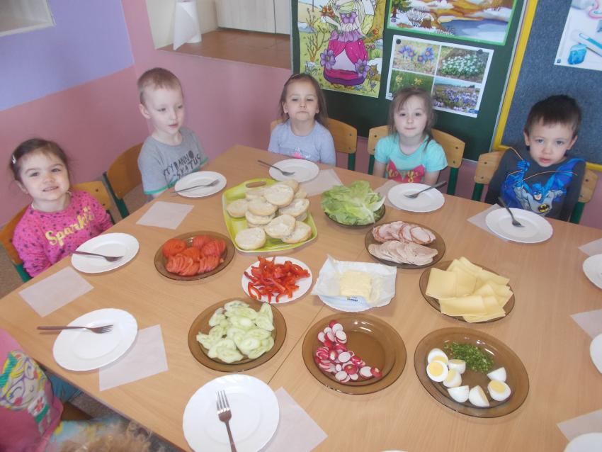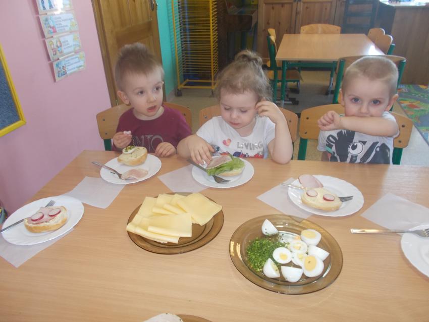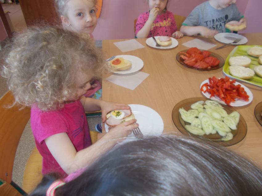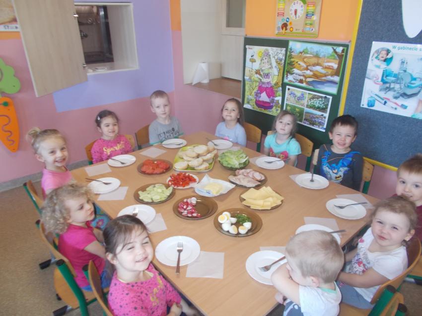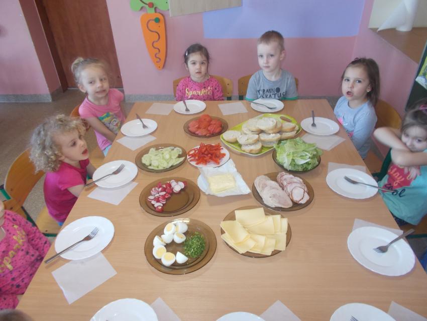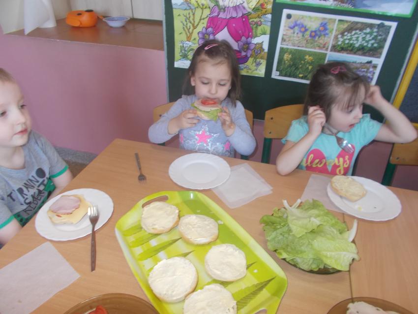 We wtorek 28.03.2017r. w naszym przedszkolu wiosna zagościła na dobre. Zajęcia kulinarne wiosną, to sama przyjemność! W sali ,,KRASNOLUDKÓW’’ unosił się zapach szczypiorku i warzyw: sałaty, pomidorów, ogórków, papryki i rzodkiewki. Maluszki podjęły wielkie wyzwanie pod hasłem ''Robimy zdrowe kanapki". Świeże warzywa, sery, pieczywo to doskonałe produkty, które świetnie smakują i mają mnóstwo witamin. Dzieci samodzielnie lub z niewielką pomocą dorosłych smarowały, kroiły, układały produkty tworząc na kanapkach fantazyjne wzory. Kanapeczki były bardzo kolorowe, smaczne a dzieci bardzo zadowolone i najedzone. Pamiętajmy, że najlepiej smakują kanapki wykonane własnoręcznie. Bardzo dziękujemy rodzicom za pomoc w przygotowaniu produktów.