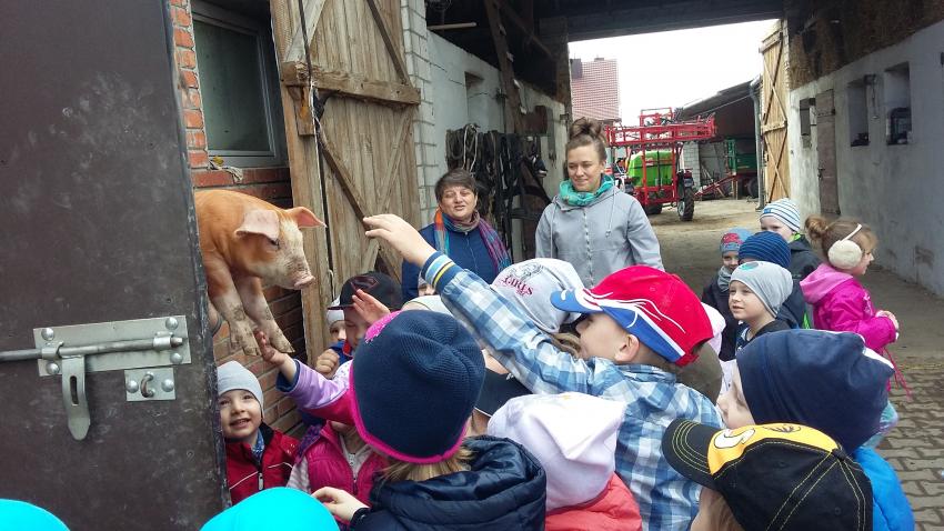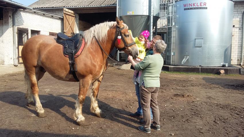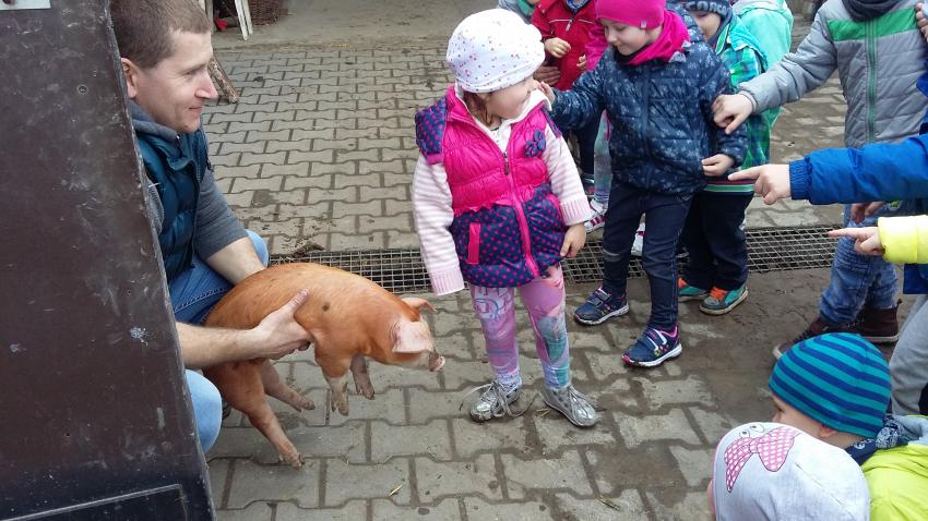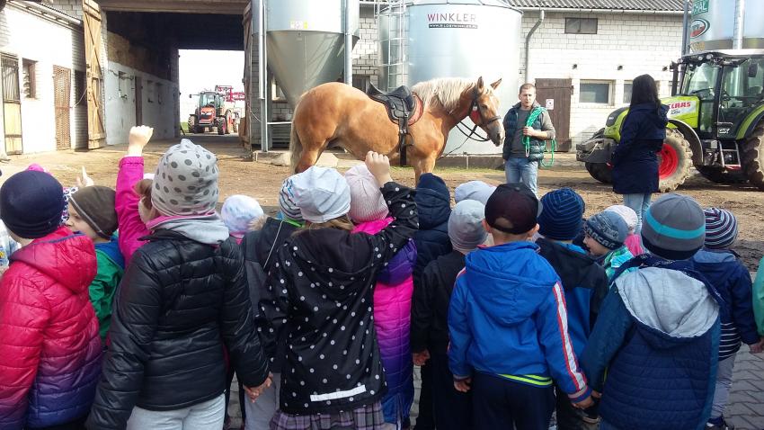 4 kwietnia we wtorek wszystkie dzieci z naszego przedszkola odwiedziły pobliskie gospodarstwo rolne. Gospodarz Pan Michał Gajda opowiedział przedszkolakom jak wygląda praca w gospodarstwie oraz zaprezentował maszyny rolnicze. Najwiekszą atrakcją były zwierzęta, dzieci zobaczyły m.in. konie, świnki, króliki i kury. Bardzo dziękujemy gospodarzom za umożliwienie nam przeżycia tej niezwykłej przygody. Przedszkolaki na długo zapamiętają to niezwykłe spotkanie.