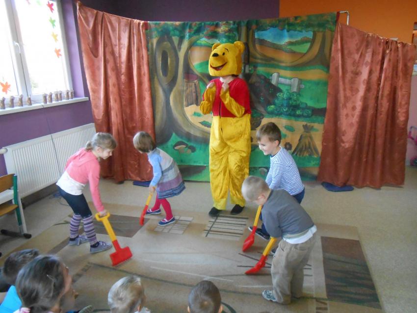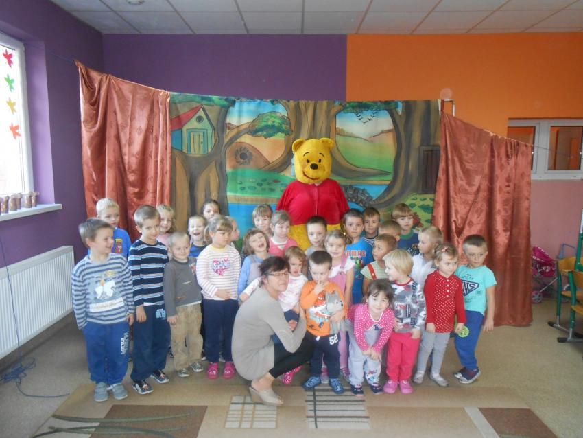 Z okazji ŚWIĘTA PLUSZOWEGO MISIA odwiedził nas teatrzyk z przedstawieniempt."Jesień u Kubusia Puchatka".Spektakl był bardzo ciekawy, dzieci były zachwcone spotkaniem z bohaterem ulubionej bajki.