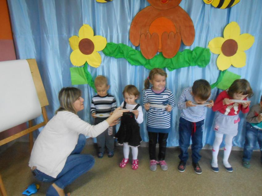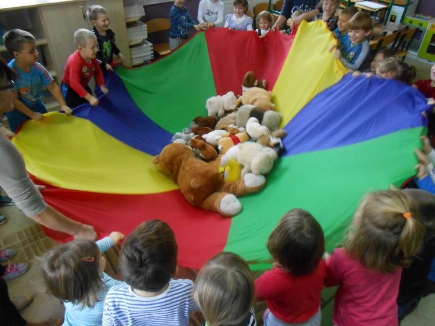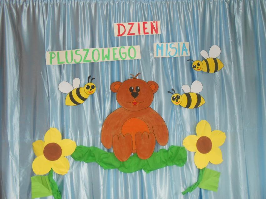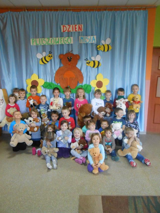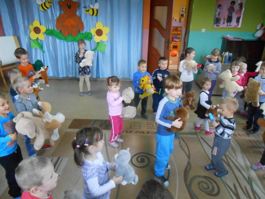 W dniu 25.11.2014r w naszym przedszkolu odbył się" Międzynarodowy Dzień Pluszowego Misia".Z tej okazji wychowawczynie grup przygotowały dla dzieci wiele ciekawych konkursów, zabaw i zagadek.Między innymi dzieci piznały historię powstania Święta Pluszowego Misia, następnie odbyły się konkursy m.in.kto najszybciej zliże z talerzyka przysmak misia ( miód),malowanie z zasłoniętymi oczami portretu misia, przejście misiów leśną ścieżką.Uroczystość zakończyły zabawy rytmiczno- ruchowe przy muzyce "Dwa malutkie misie", "Taniec pajacyka z misiem", "Dzień pluszowego misia", "Dwa misie". Za wspólną zabawę wszystkie dzieci zostały nagrodzone pysznymi ciasteczkami.