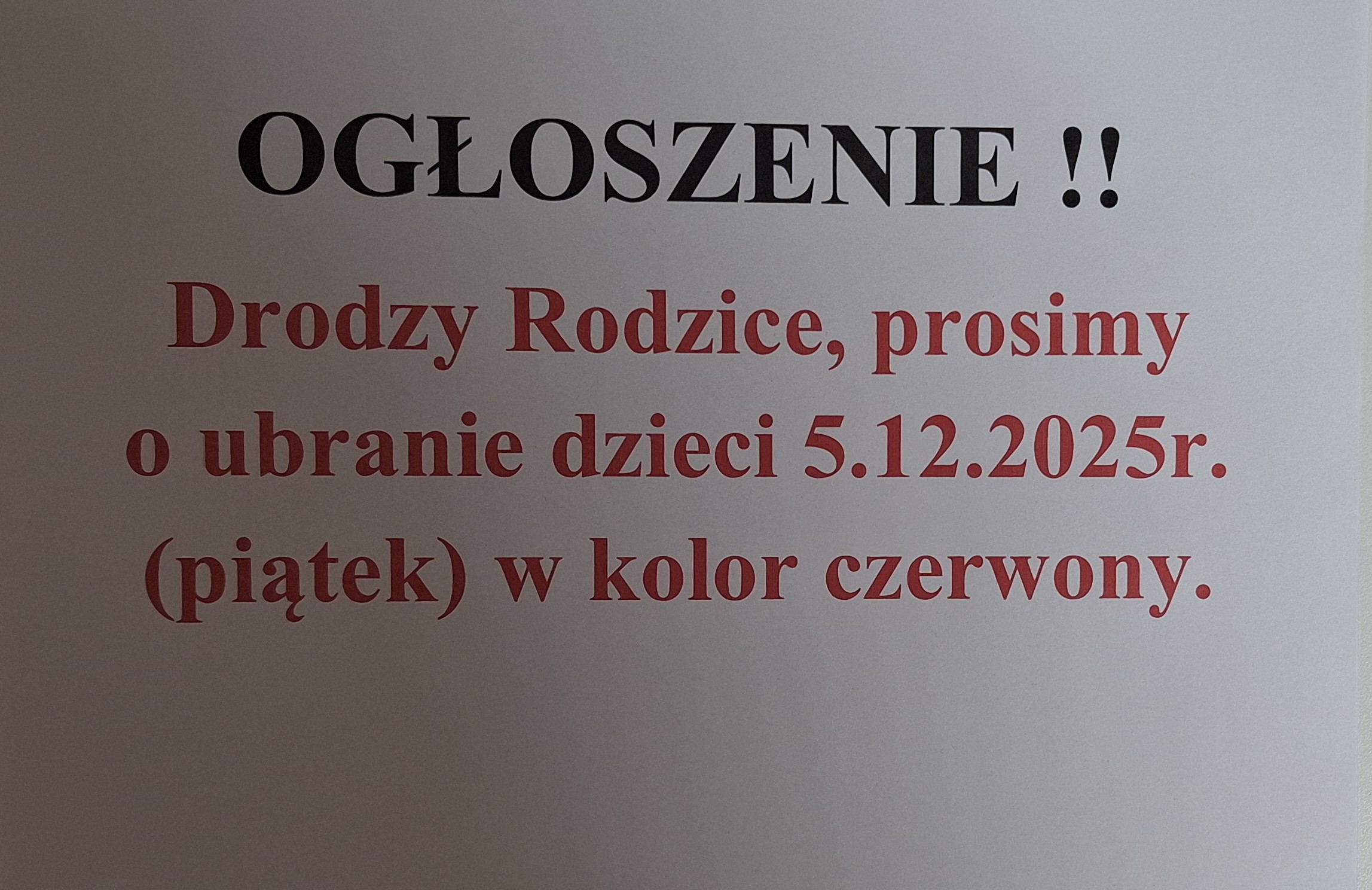 W dniu 28.01.2025r. (wtorek) na występ z okazji Dnia Babci i Dziadka prosimy o strój galowy dla wszystkich dzieci.