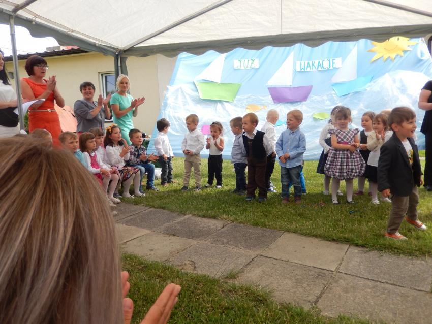 Nowy rok w naszym przedszkolu rozpoczął się bardzo przyjemnie. Przedszkolaki chętnie wróciły do swojego przedszkola, zwłaszcza że czekały na nie odświeżone i częściowo wyremontowne sale przedszkolne. Największą radość  dzieciom sprawił jednak zasponsorowany przez Urząd Miasta i Gminy Sulejów plac zabaw, powiększony o nowe boisko do gry w piłkę oraz zestaw do zabawy dla najmłodszych przedszkolaków zaprojektowany z myślą o maluszkach. Nie zabrakło również altanki, w której dzieci mogą wypocząc oraz pograć w gry stoliczkowe. Szczęśliwe przedszkolaki w podziękowaniu za nowy plac zabaw przygotowały program artystyczny dla rodziców i zaproszonych gości. Po przemowach i podziękowaniach odbyło się wspólne grillowanie.