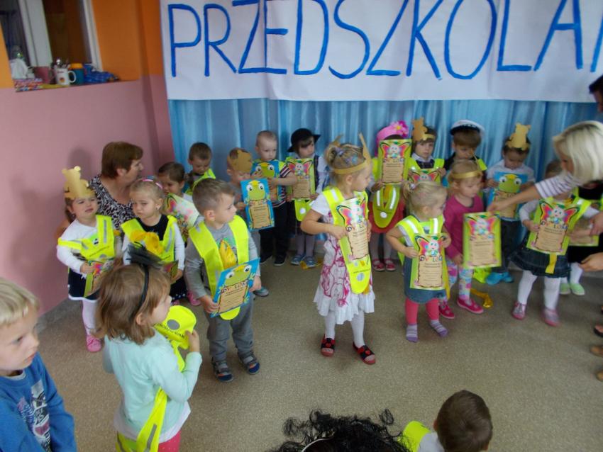 20 września obchodzimy Ogólnopolski Dzień Przedszkolaka, w naszym przedszkolu ten dzień był bardzo wyjątkowy. Dzieci przyszły do przedszkola odświętnie ubrane, zaznaczając swój strój śmiesznym elementem. Przedszkolaki chętnie brały udział w zabawach i konkursach przygotowanych specjalnie dla nich oraz bez problemu rozwiązały quiz o bezpieczeństwie. W nagrodę otrzymały kamizelki odblaskowe oraz drobne upominki na pamiątkę zasponsorowane przez Urząd Miasta i Gminy Sulejów. Ten wyjątkowy dzień był świetną okazją by oficjalnie powitać maluszki w gronie przedszkolaków. Wszystkie nowo przyjęte dzieci zostały pasowane na przedszkolaki i otrzymały pamiatkowe dyplomy.