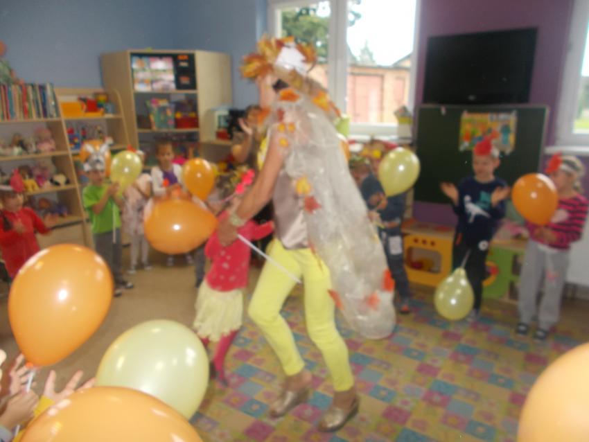 Z okazji Dnia Przedszkolaka, dzieci zostały zaproszone do wspólnej zabawy i udziału w konkursach. Przedszkolaki rzucały kółkami do celu, chodziły z krążkiem na głowie, uczestniczyły w zabawach z wykorzystaniem chusty animacyjnej oraz zmagały się z balonami, które na końcu ozdobiły, zgodnie z własnymi pomysłami. Radość, śmiech i głośny doping uczestników świadczyły o wspaniałej zabawie. Nasze przedszkolaki odwiedziła również pani jesień , ktorą dzieci gorąco i sedecznie powitały znanymi piosenkami i wierszykami. Niespodziankom nie było końca . Zaprosiliśmy również panią bibliotekarkę, która z okazji akcji " Cała Polska czyta dzieciom" , powitała maluszków pięknymi bajkami i opowiadaniami.