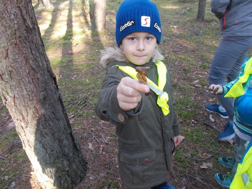 W piątek nasi milusińscy wybrali się do lasu w poszukiwaniu pierwszych oznak jesieni. Pogoda była piękna co umożliwiało wszystkim spacerowanie po lesie i zbieranie grzybów, szyszek, liści , żołędzi i kasztanów.