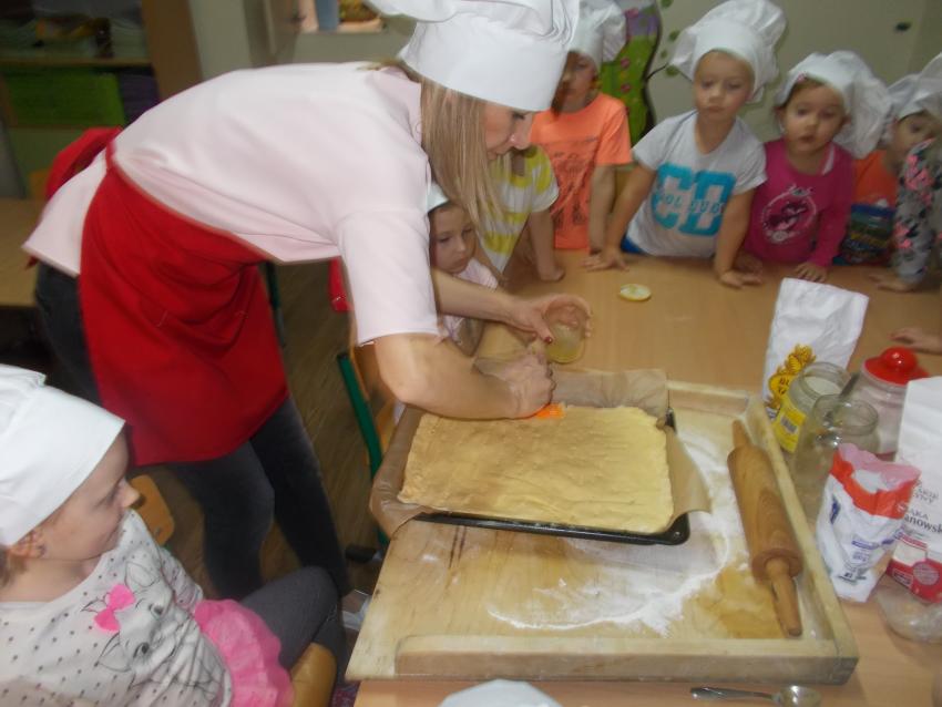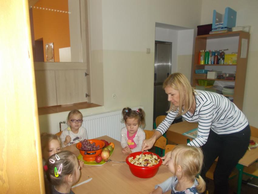 W dniu 11.października grupa krasnoludków przygotowala jesienne ciasto - jabłecznika. Wszystkie dzieci chętnie uczestniczyły w zajęciach kulinarnych i w degustacji ciasta.