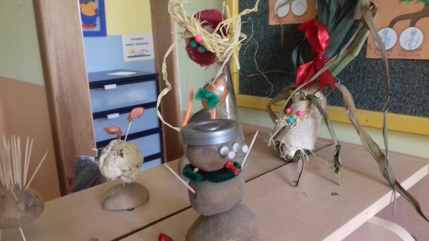 Grupa 5,6-latków wykonała warzywne ludziki. Trzeba przyznać,że posiadają dużą wyobraźnię.