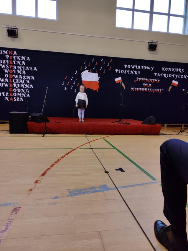 Dnia 24.11.2024r.nasza podopieczna Oliwia z grupy starszaków reprezentowała nasze Przedszkole oraz naszą Gminę na Powiatowym Konkursie Piosenki Patriotycznej "Śpiewajmy dla Niepodległej", który odbył się w Szkole Podstawowej w Łękach Szlacheckich.. Był to pierwszy występ przed tak dużą publicznością. Bardzo dziękujemy rodzicom Oliwki za zaangażowanie, natomiast Oliwce gratulujmy pięknego występu, życzymy dalszych sukcesów.