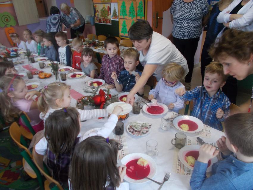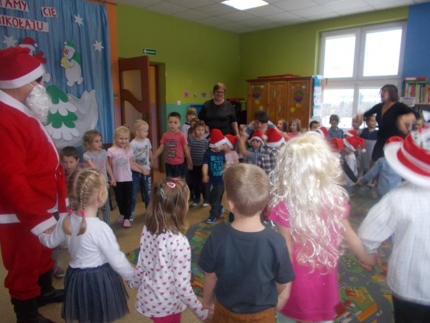 Wizyta ŚWIĘTEGO MIKOŁAJA w przedszkolu, to jeden z najbardziej oczekiwanych przez dzieci dni w roku. Wszystkie dzieci już od samego rana z wielką niecierpliwością spoglądały na drzwi, nasłuchiwały „Mikołajowych” dzwoneczków. Święty Mikołaj nie zawiódł dzieci i nie kazał długo na siebie czekać. Już z samego rana zawitał do PRZEDSZKOLA. Maluszki dzielnie zaśpiewały przygotowaną piosenkę, a Mikołaj wręczył każdemu dziecku wspaniały prezent i musiał się niestety pożegnać, ponieważ czekały na niego dzieci z całego świata. A prezenty były wspaniałe, radość po rozpakowaniu podarków była ogromna – co potwierdza pamiątkowe zdjęcie. Dzieci długo wspominały ten dzień, dzieliły się wrażeniami, ponownie oglądały prezenty, zerkały przez okno z nadzieją, że jeszcze raz zobaczą naszego gościa i pomachają mu na pożegnanie.