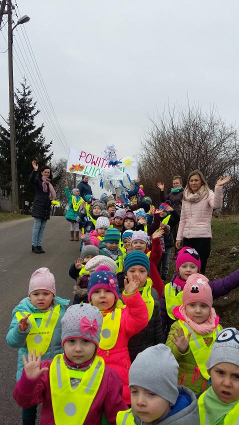 Jak co roku 21 marca przedszkolaki wybrały się nad rzekę, by prastarym zwyczajem pożegnać zimę. Wszyscy w radosnych nastrojach śpiewając wiosenne piosenki, wyglądali oznak wiosny, w wesołym korowodzie dotarli nad rzekę. Dzieci wrzuciły wykonaną prez siebie Marzannę do wody, by mogła popłynąć do morza. Teraz radujemy się wiosną. W drodze powrotnej udało się przedszkolakom spotkać wiosnę w postaci pączków na drzewach, krokusów oraz przebiśniegów.
