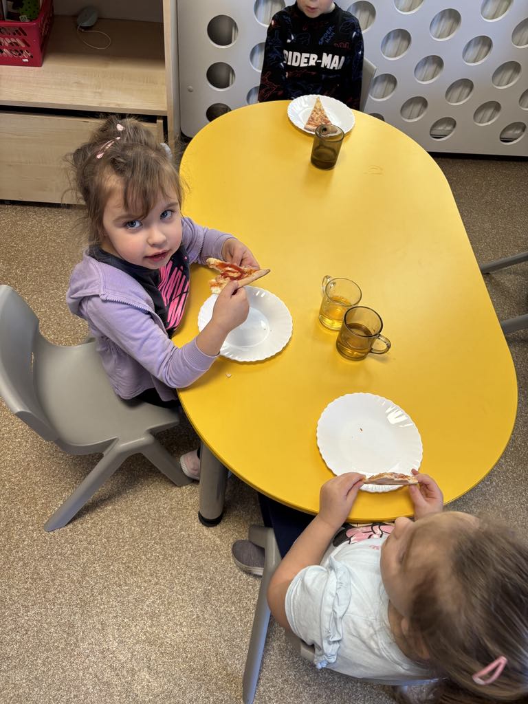 Ostatni dzień w przedszkolu przed przerwą świąteczną to wspólny Obiad Wigilijny. Czas w którym wszystkie przedszkolaki siadają do wspólnego stołu, składają życzenia i śpiewają kolędy.