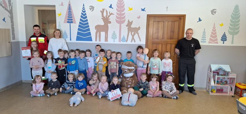 Dnia 17.02.2025r. nasze przedszkole odwiedzili strażacy z OSP w Przygłowie. Celem spotkania było zaprezentowanie przedszkolakom udzielania pierwszej pomocy. Dzieci wcieliły się w rolę małych ratowników, zdobytą wiedzę wykorzystały podczas ćwiczeń praktycznych. Zajęcia zachwyciły najmłodszych. Dziękujemy za przekazaną wiedzę i poświęcony czas.