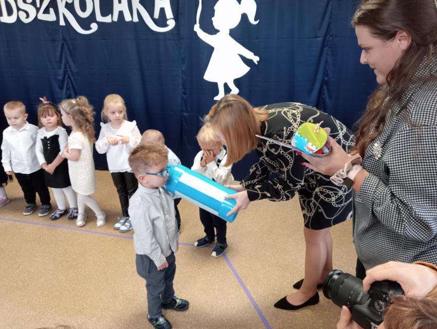Pasowanie na Przedszkolaka to wyjątkowa chwila w życiu każdego dziecka, które po raz pierwszy rozpoczyna swoją przygodę z przedszkolem. 18.11.2024r. dzieci po raz pierwszy wystąpiły przed publicznością, prezentując swoje umiejętności wokalne, recytatorskie i taneczne. Następnie złożyły uroczyste ślubowanie a Pani Dyrektor dokonała uroczystego pasowania. Na pamiątkę tak ważnego wydarzenia przedszkolaki otrzymały dyplomy i słodkie upominki.